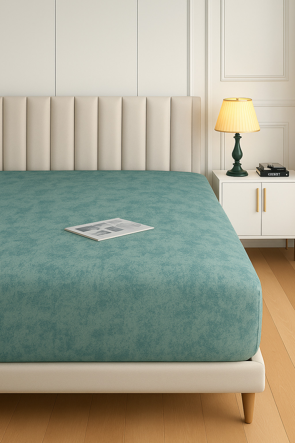 - ملحفه کشدار تشک خوشخواب دونفره پتینه سبزآبی سایز تخت 140 و 160 و 180.