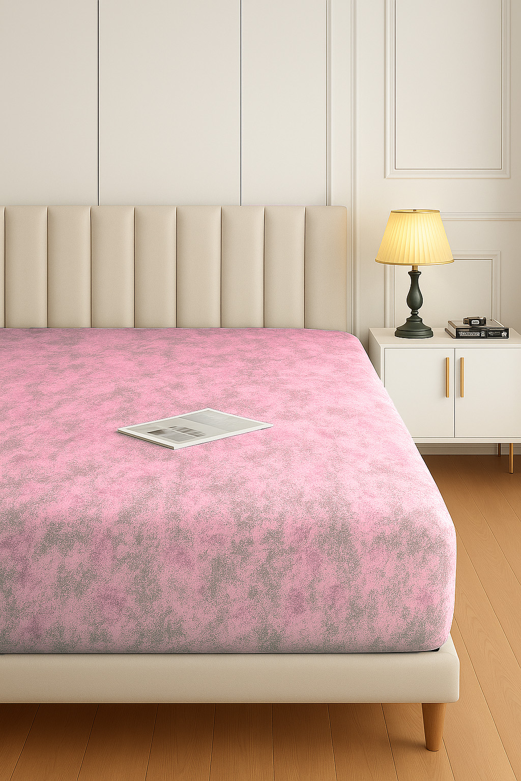 - ملحفه 4 طرف کش پتینه صورتی مناسب تشک خوشخواب