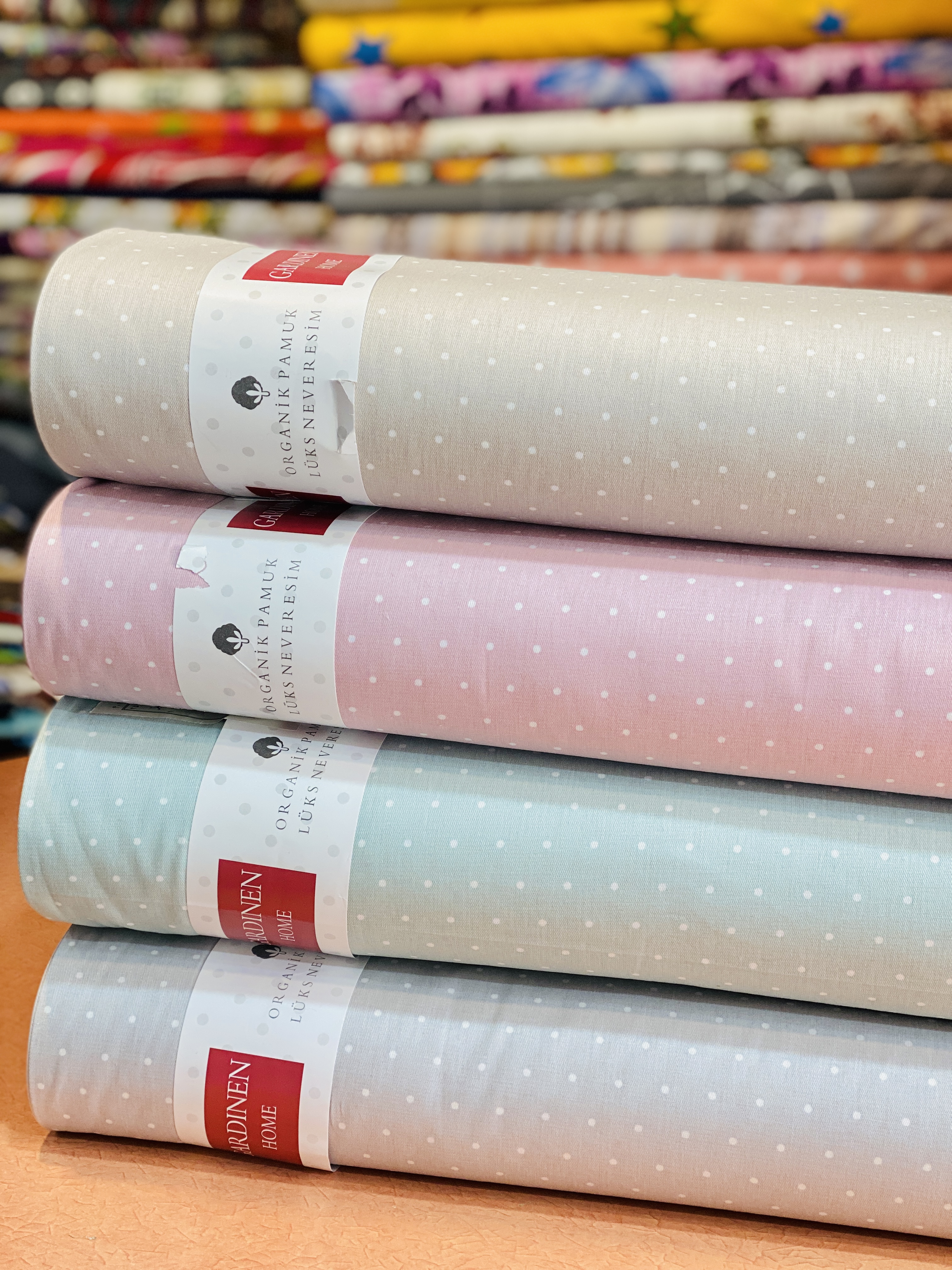 پارچه ملحفهای خالدار ترک با عرض ۲ متر و بافت لطیف صددرصد نخ پنبه، انتخابی عالی برای دوخت ملحفه، روتختی و تشک نوزاد است.