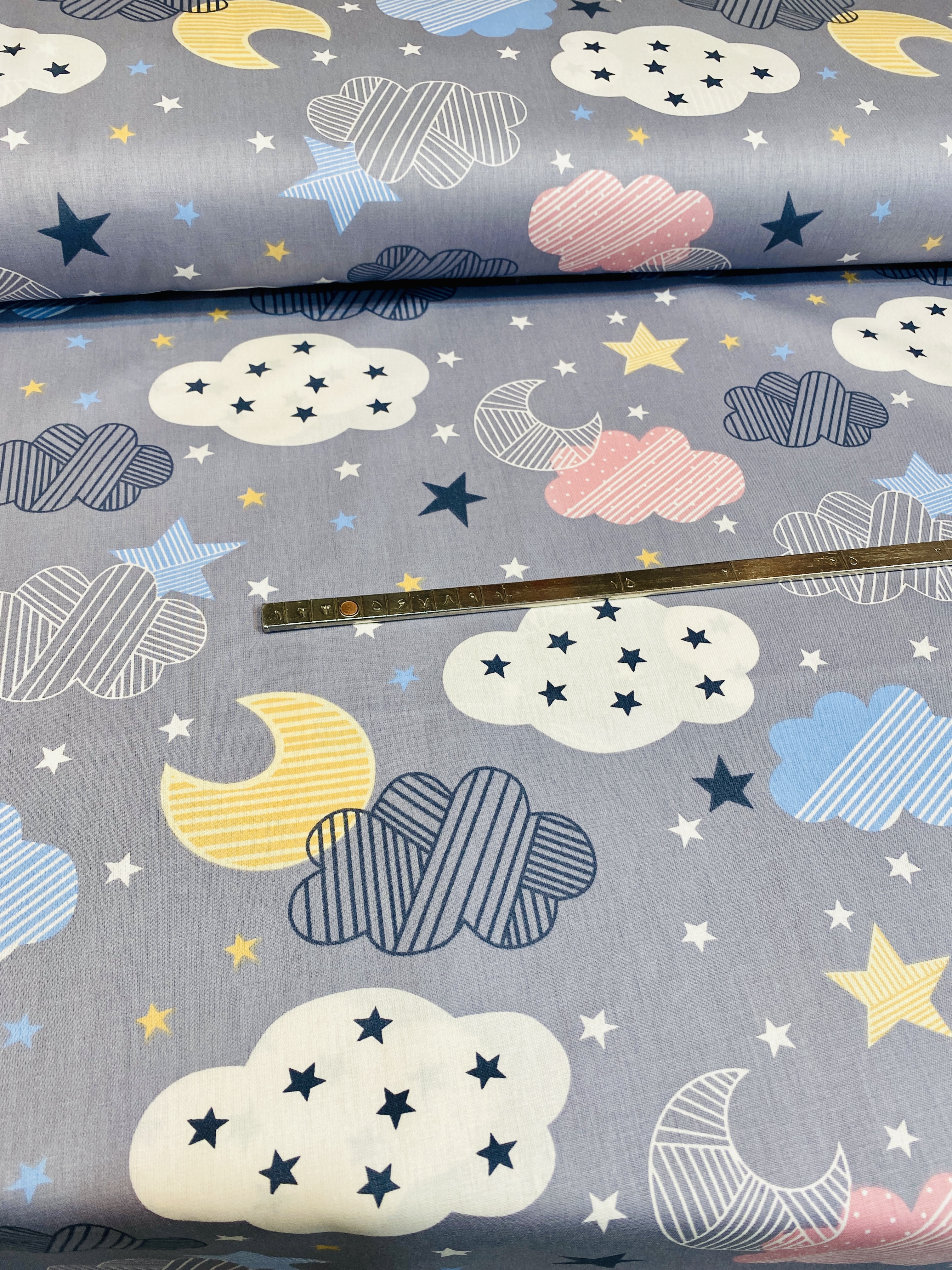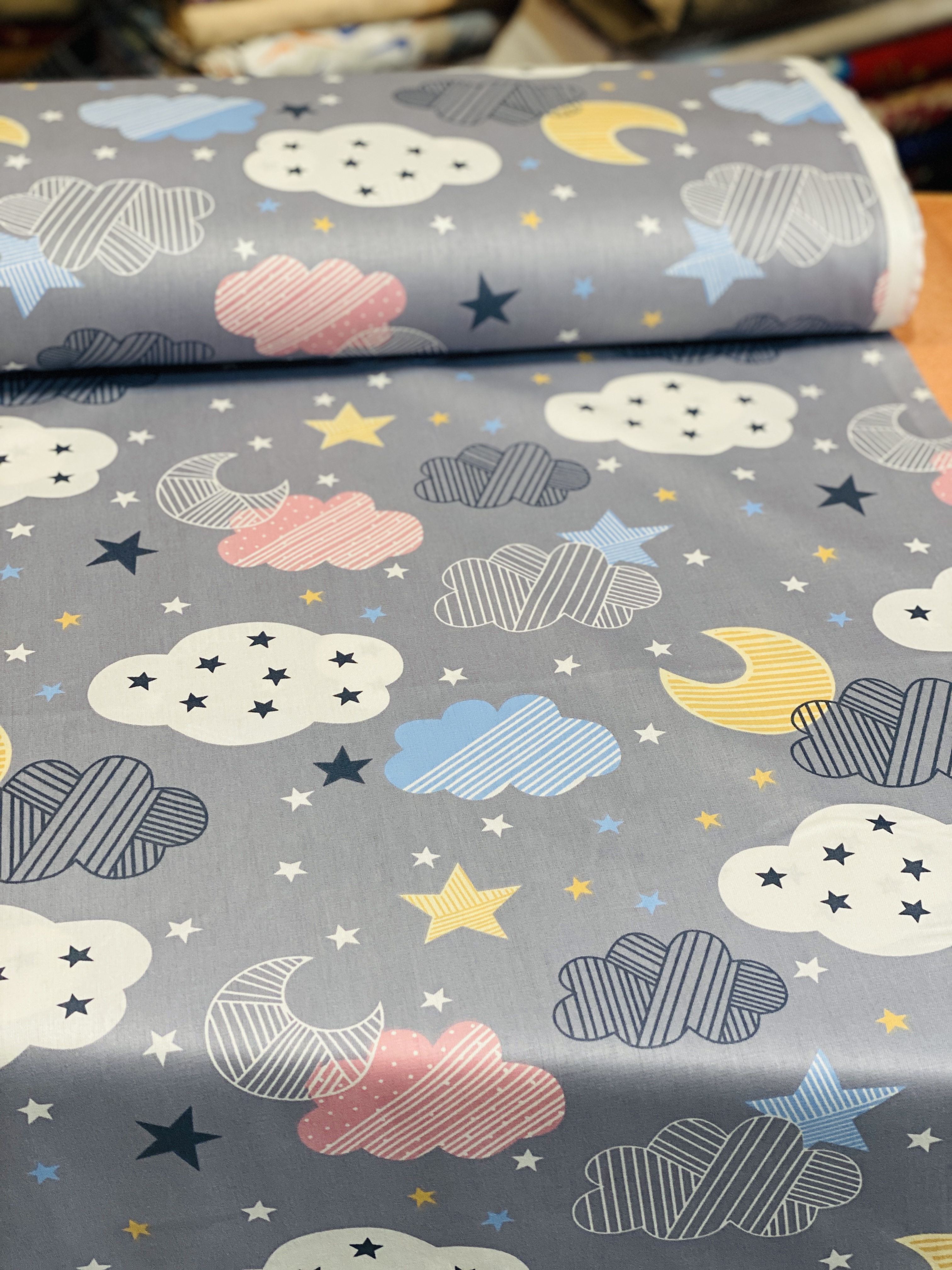 پارچه  عروسکی ابر طوسی روشن ، بدون پلی استر مناسب رختخواب کودک و روتشک نوزاد، سرویس نوزاد، روتختی یک نفره پسرانه و دخترانه، روتشکی یک نفره، ملحفه خوشخواب کودک